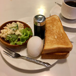 司 - モーニングサービスのトースト、サラダ、ゆで卵